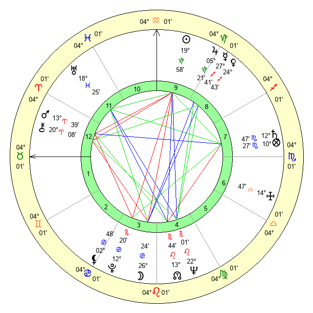 | Saturn | 13 Scorpio 19 | 26 Pisces 43 | 12 Scorpio 22 |