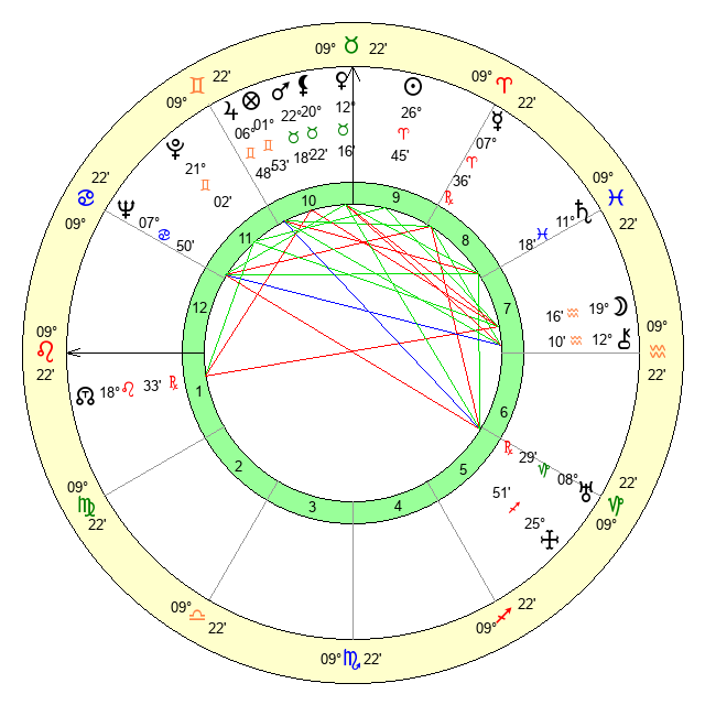 | Sun | 26 Aries 46 | 27 Aries 56 | 20 Leo 58 |