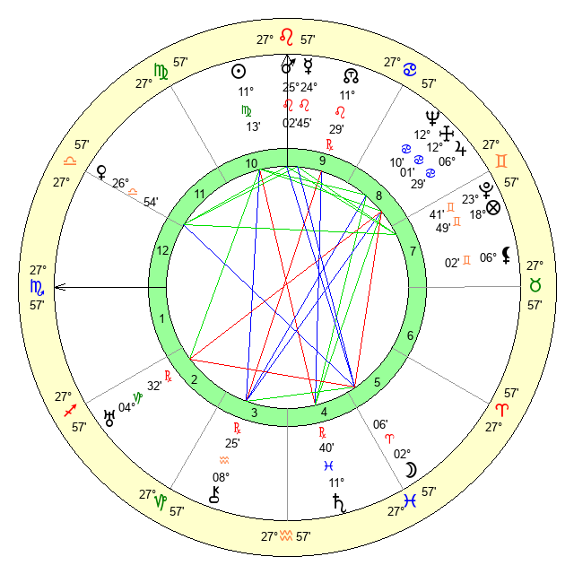 | Sun | 11 Virgo 14 | 12 Virgo 25 | 10 Capricorn 9 |