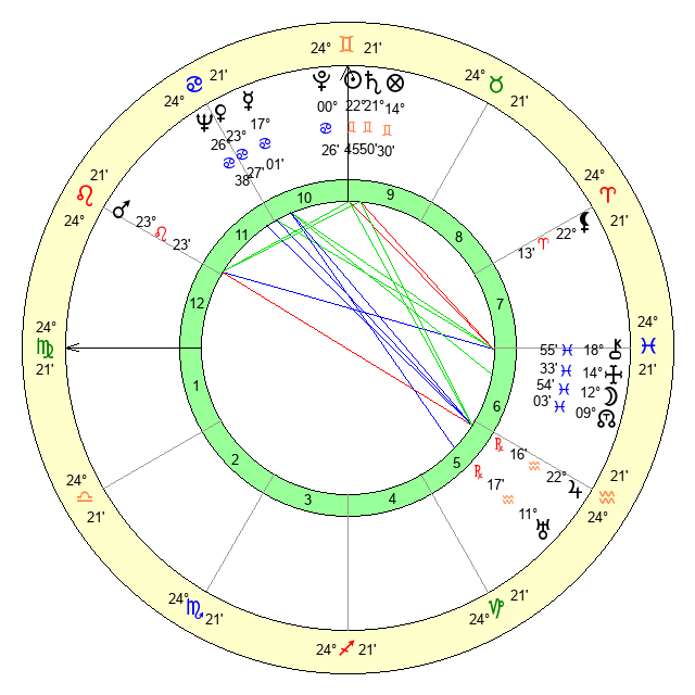 | Sun | 22 Gemini 46 | 23 Gemini 53 | 9 Libra 38 |