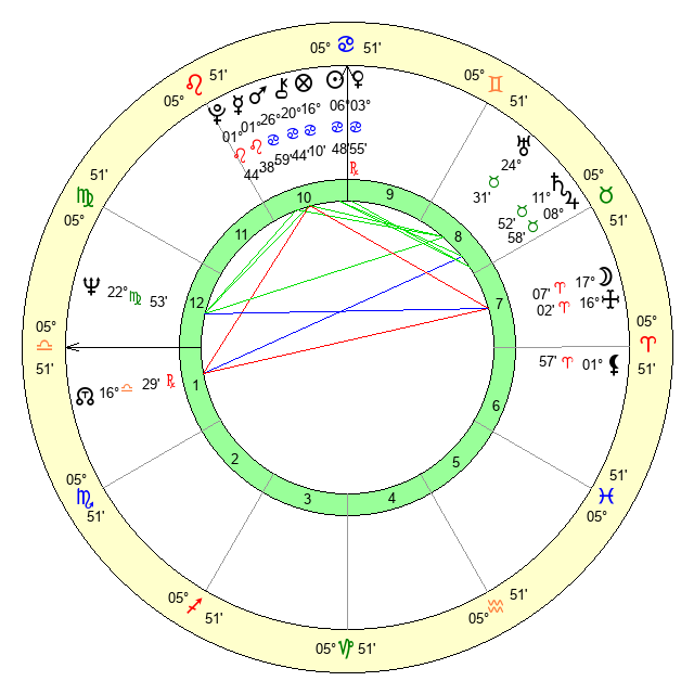 | Sun | 6 Cancer 48 | 7 Cancer 15 | 28 Virgo 32 |