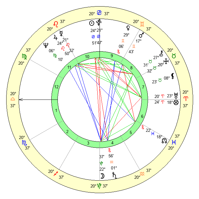 | Sun | 24 Cancer 51 | 25 Cancer 22 | 25 Libra 6 |