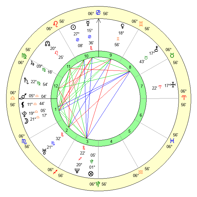 | Moon | 21 Libra 15 | 19 Taurus 31 | 22 Gemini 21 |