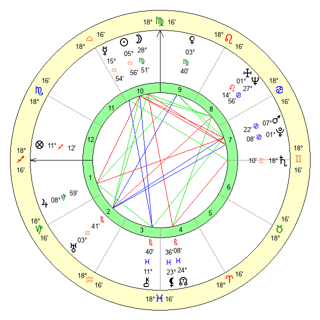 | Venus | 3 Virgo 40 | 12 Virgo 29 | 23 Capricorn 14 |