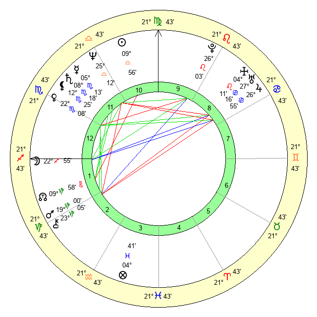 | Saturn | 8 Scorpio 46 | 27 Pisces 26 | 17 Scorpio 0 |
