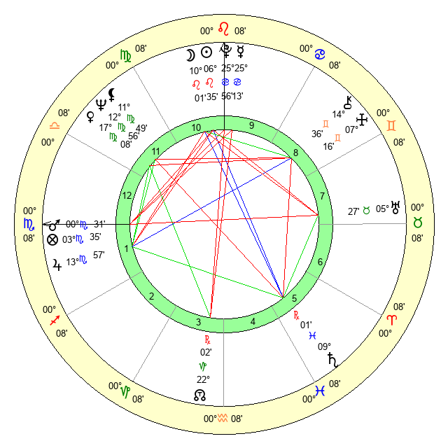 | Moon | 9 Leo 55 | 17 Libra 55 | 18 Scorpio 59 |
