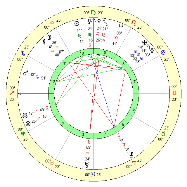 | Sun | 14 Virgo 14 | 15 Virgo 19 | 1 Capricorn 4 |