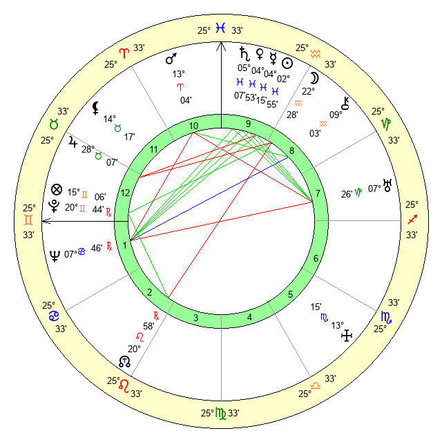 | Sun | 2 Pisces 56 | 4 Pisces 4 | 29 Gemini 8 |