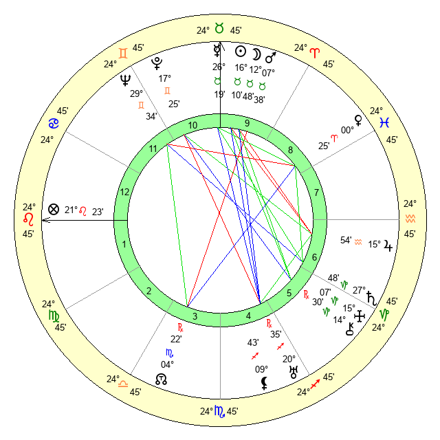 | Sun | 16 Taurus 11 | 17 Taurus 23 | 14 Virgo 7 |