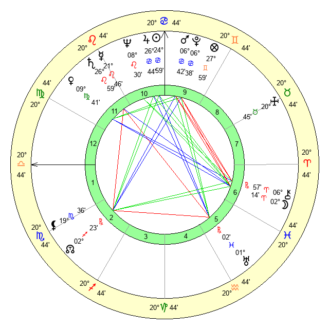 | Pluto | 6 Cancer 38 | 2 Aquarius 44 | 7 Cancer 39 |