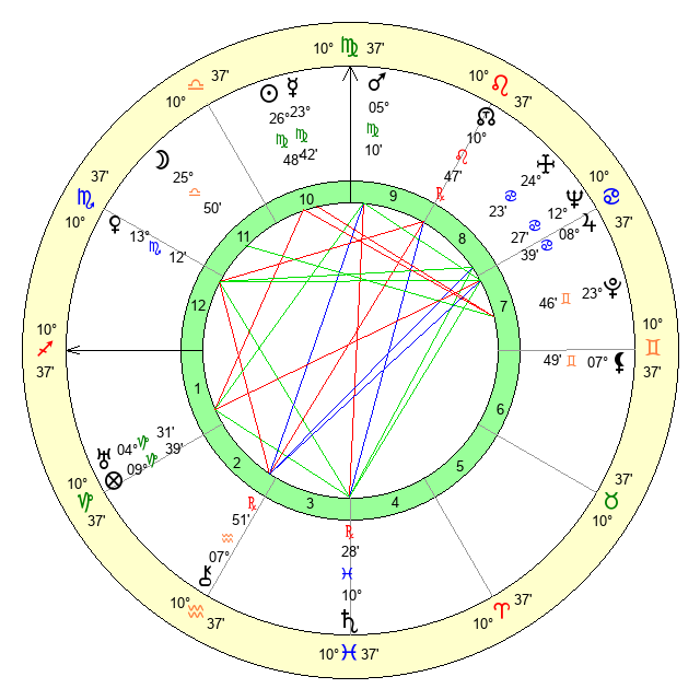 | Moon | 25 Libra 45 | 14 Virgo 58 | 12 Pisces 47 |