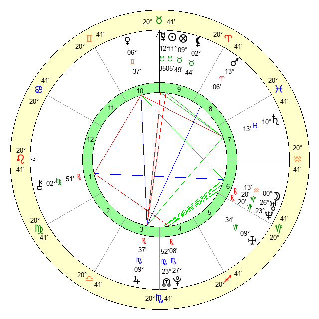 | Mars | 13 Aries 7 | 5 Leo 55 | 6 Taurus 33 |