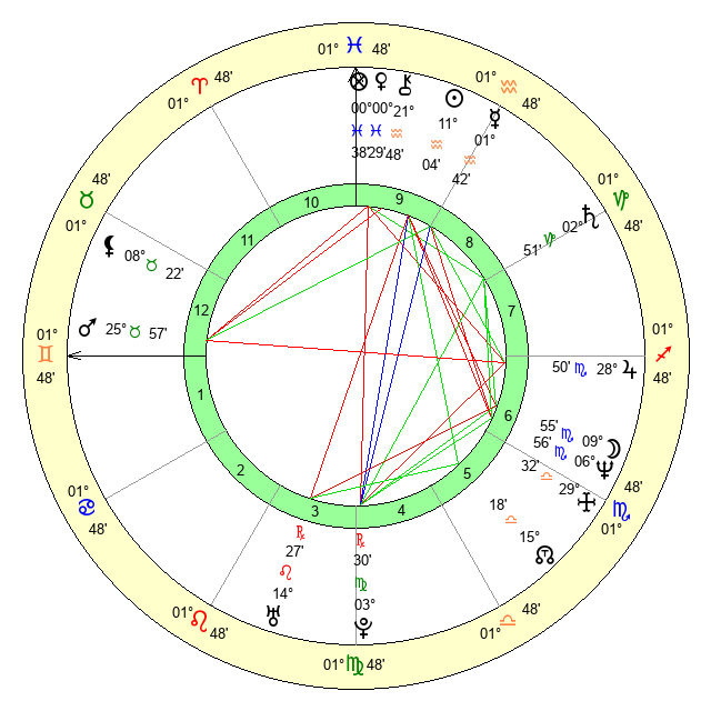 | Moon | 9 Scorpio 54 | 10 Pisces 40 | 12 Aries 9 |