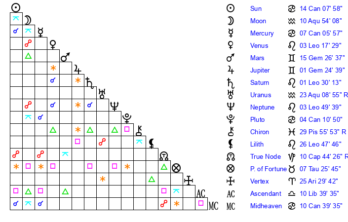| Pluto | 4 Cancer 10 | 3 Aquarius 1 | 5 Cancer 28 |