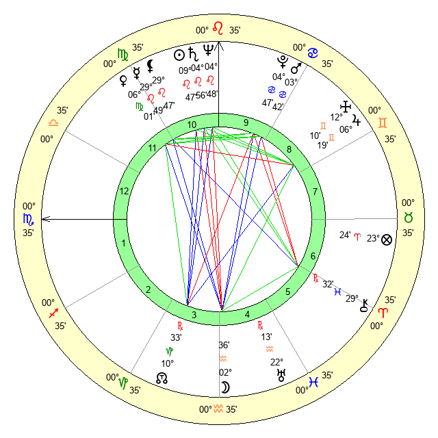 | Venus | 5 Virgo 30 | 2 Cancer 26 | 12 Capricorn 8 |