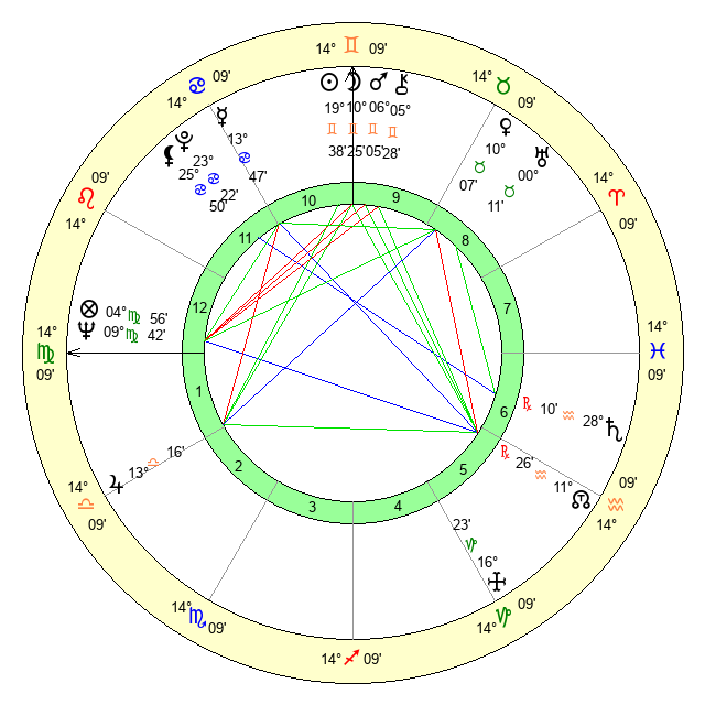 | Sun | 19 Gemini 38 | 20 Gemini 36 | 16 Virgo 51 |