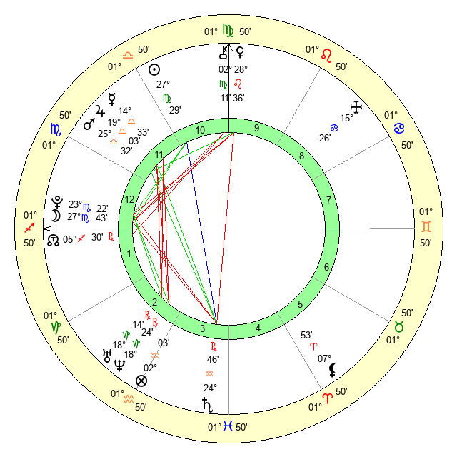 | Moon | 24 Scorpio 58 | 9 Virgo 27 | 27 Capricorn 49 |