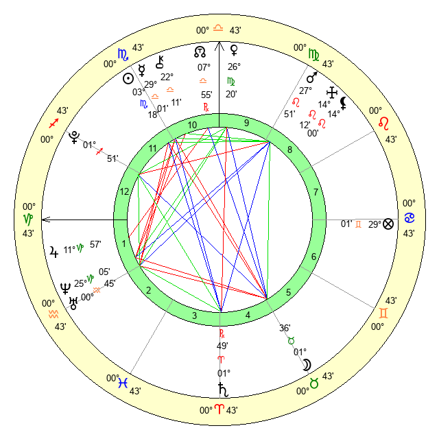 | Mars | 27 Leo 45 | 23 Scorpio 24 | 13 Virgo 11 |