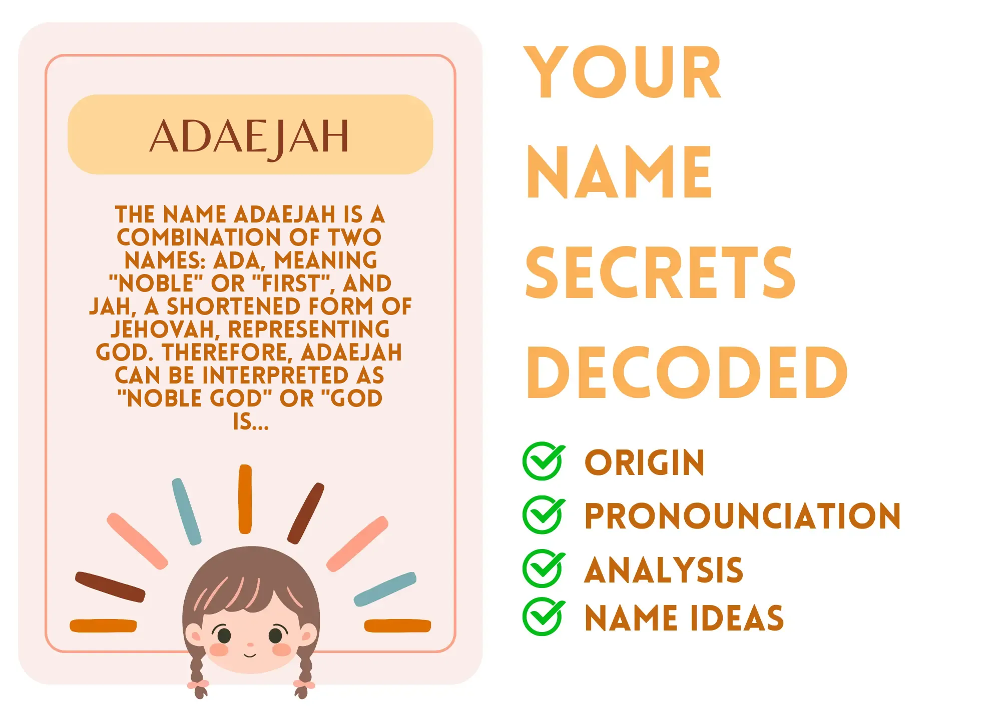 Ease of Writing and Calling: The name Adaejah is relatively easy to write and pronounce. It consists of seven letters and three syllables, making it memorable and distinctive.
