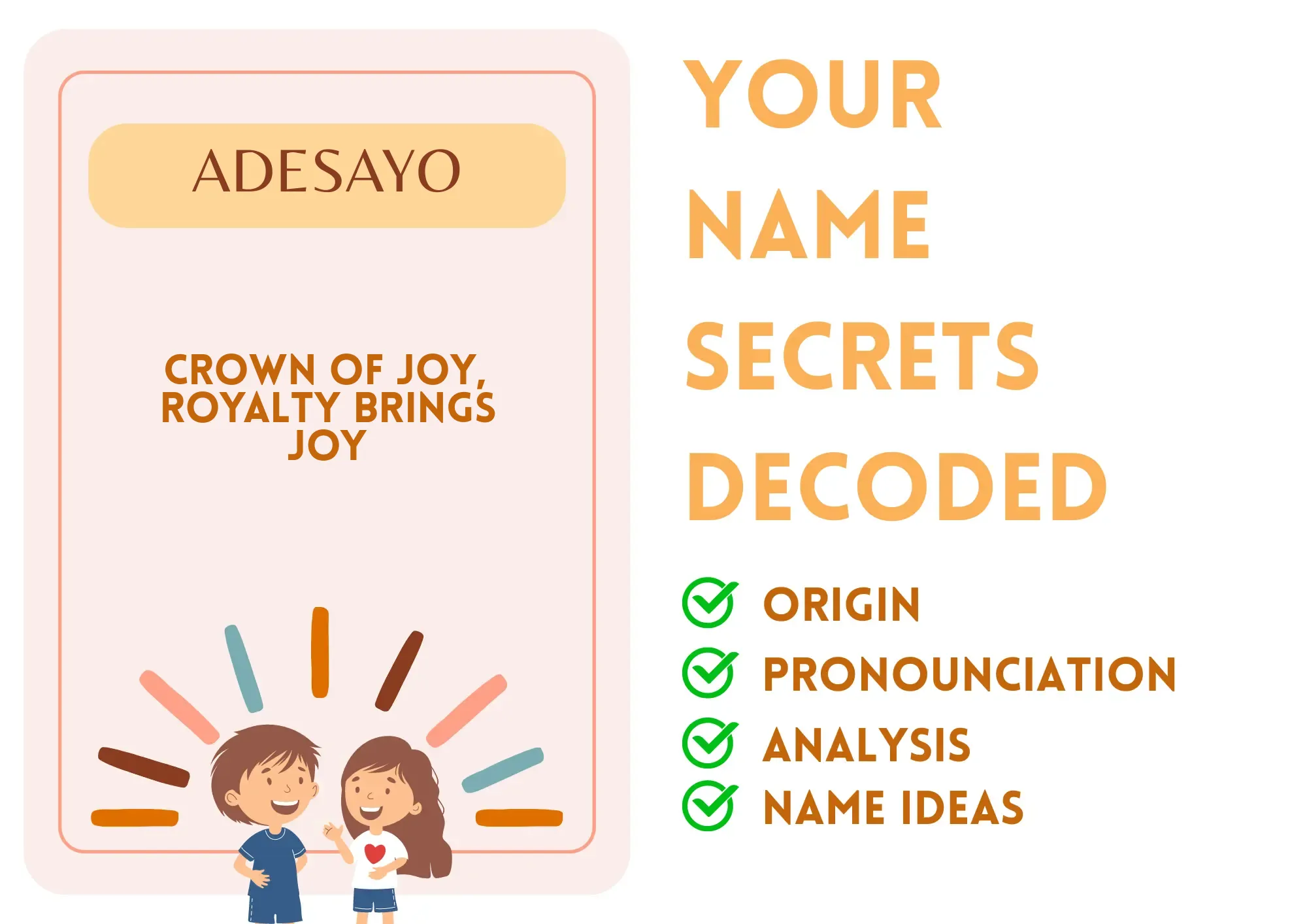 Origin: Adesayo originates from the Yoruba ethnic group in Nigeria, where names often carry deep meanings and reflect desires or circumstances around birth.