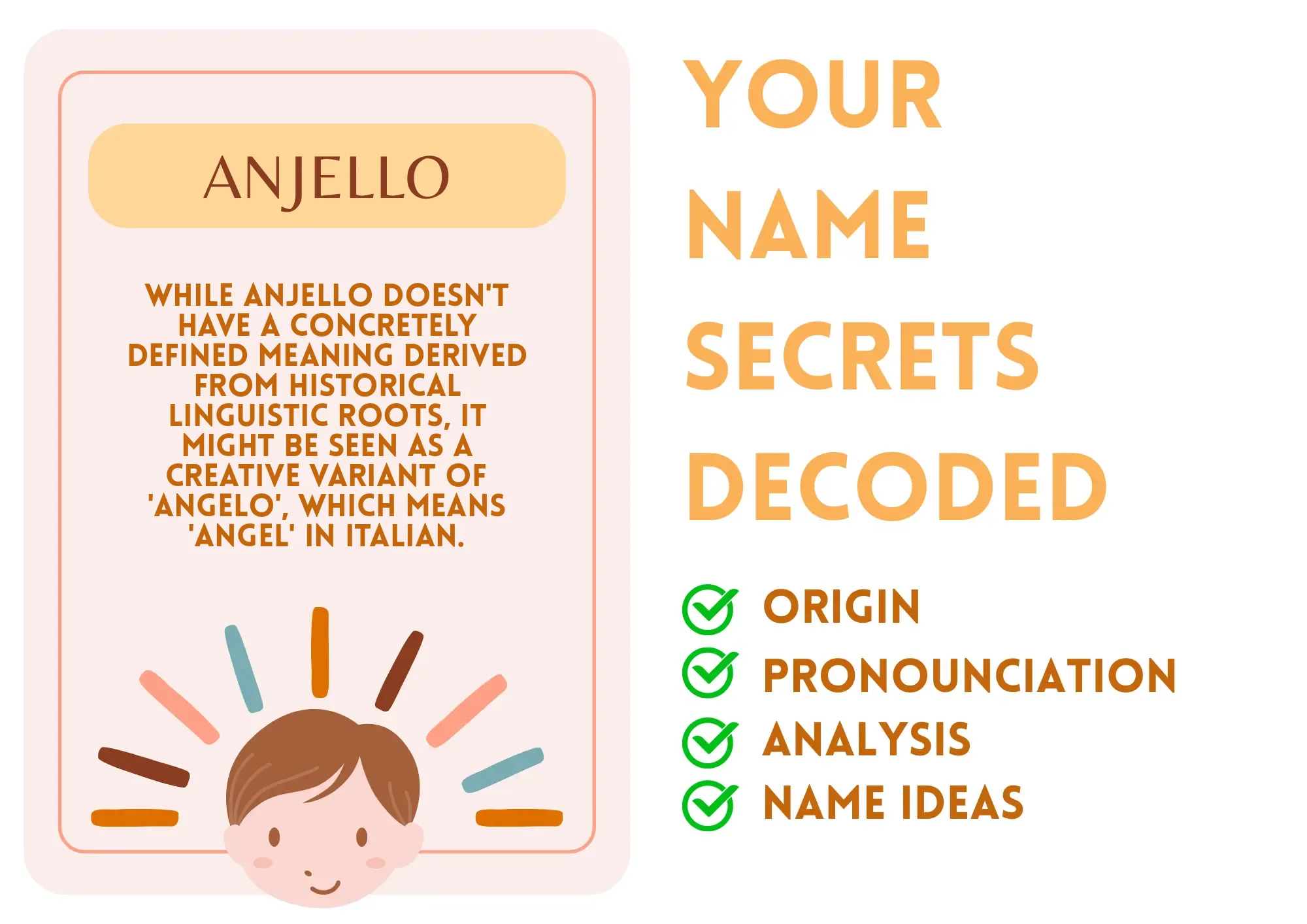 Ease of Writing and Calling: Anjello is relatively straightforward to write and pronounce, although it might initially be mistaken for Angelo.