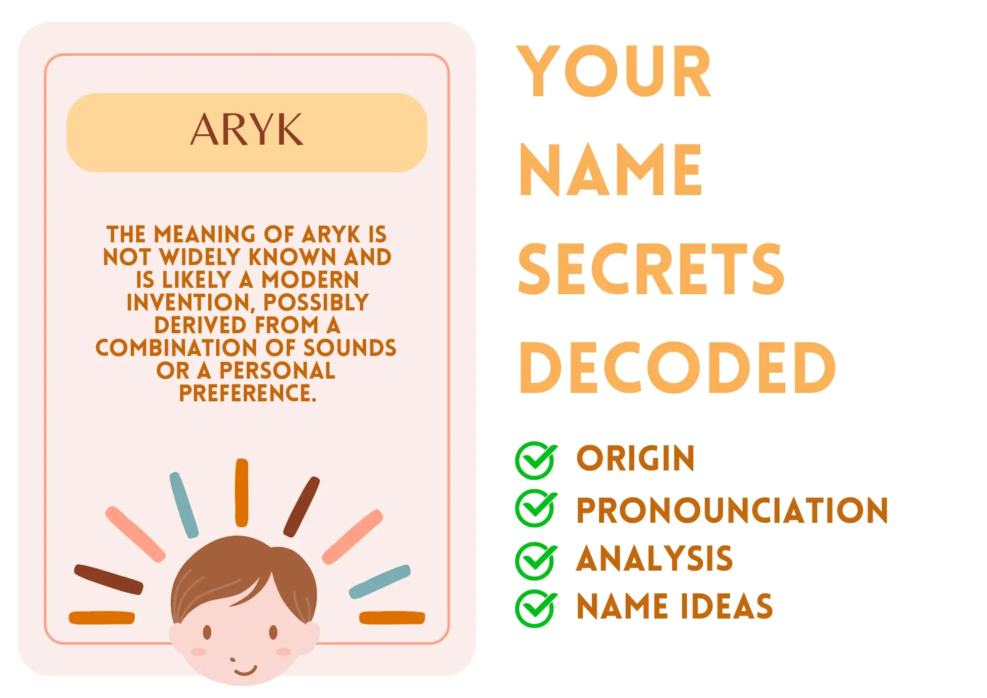 Meaning: The meaning of Aryk is not widely known and is likely a modern invention, possibly derived from a combination of sounds or a personal preference.
