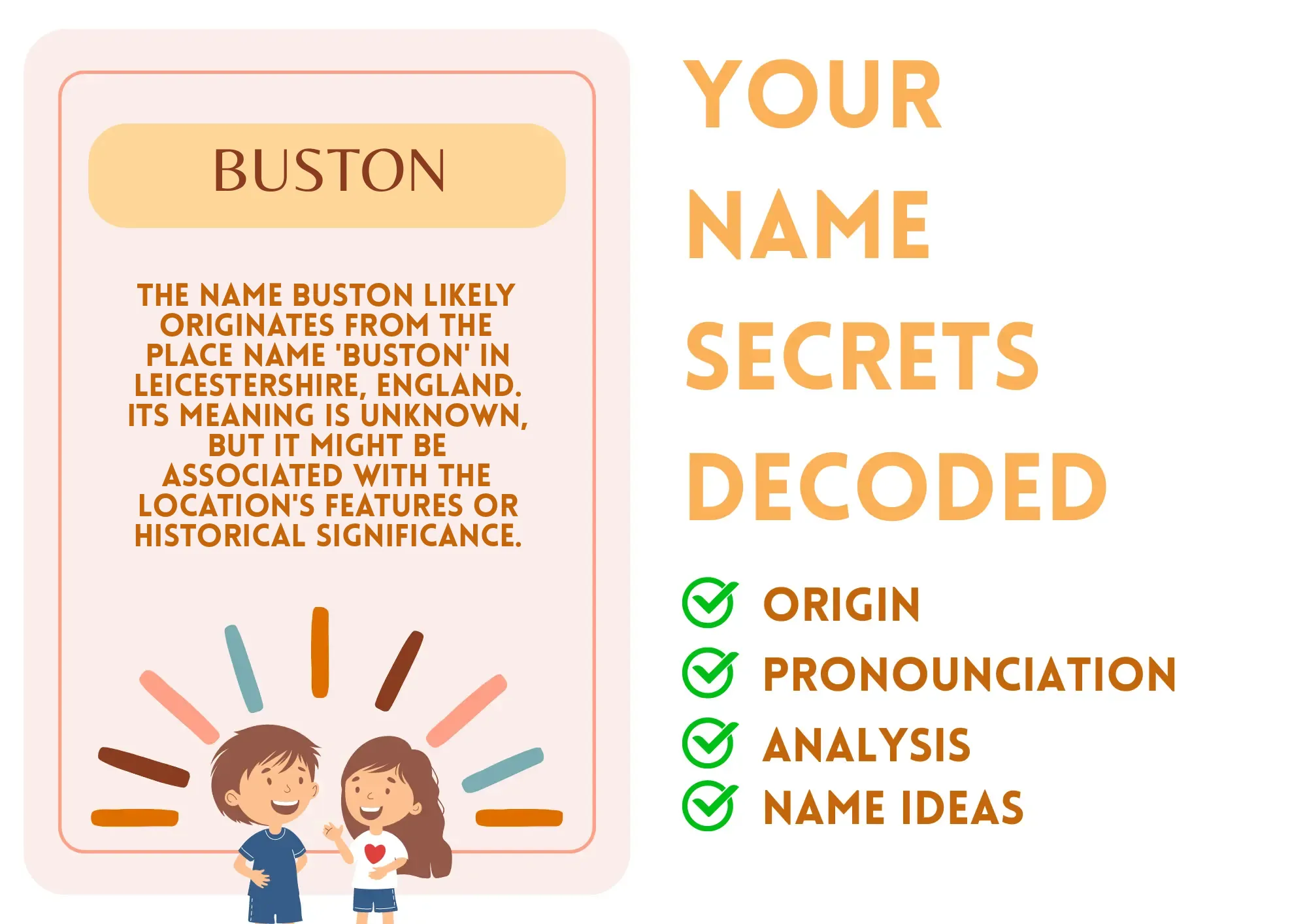 Perception: The name Buston is likely to be perceived as unique and uncommon. It might evoke a sense of history and connection to a specific place, but its rarity might make it unfamiliar to some.