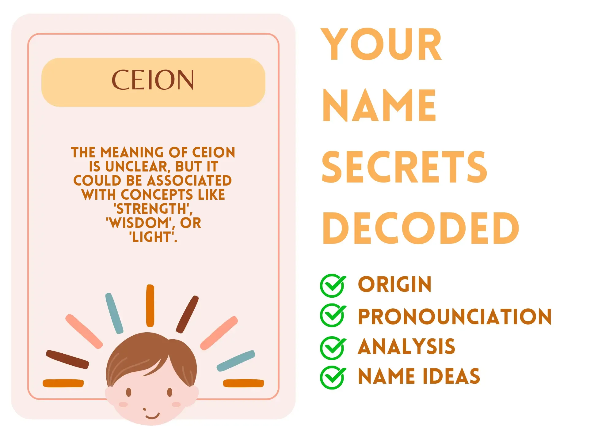Origin: The origin of Ceion is uncertain. It could be a variation of a Celtic or Greek name.