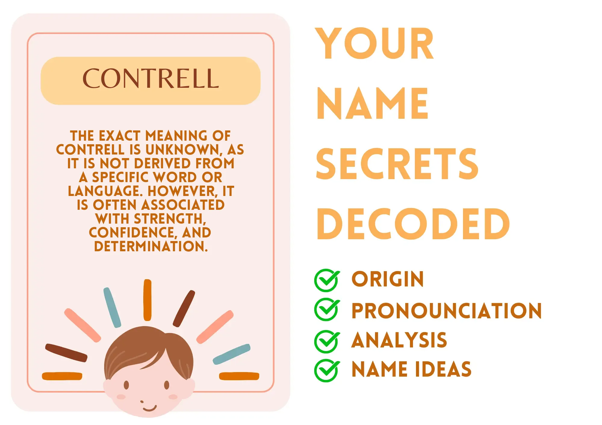 Imagine standing at the edge of a vast forest, each tree representing a new opportunity, a new adventure waiting to unfold. This is where Contrell's journey begins—a name that sparks individuality and embodies strength. Contrell isn’t just a name; it’s a banner of confidence that shouts, "I’m here to make a mark!" With its unique sound and easy rhythm, Contrell feels like the cool breeze on a warm day—inviting, refreshing, and always full of potential.