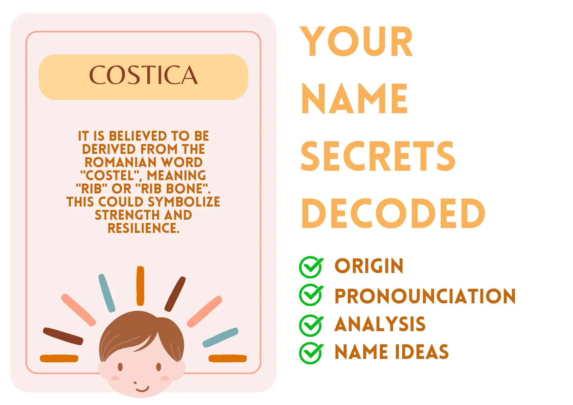 Meaning: It is believed to be derived from the Romanian word "costel", meaning "rib" or "rib bone". This could symbolize strength and resilience.