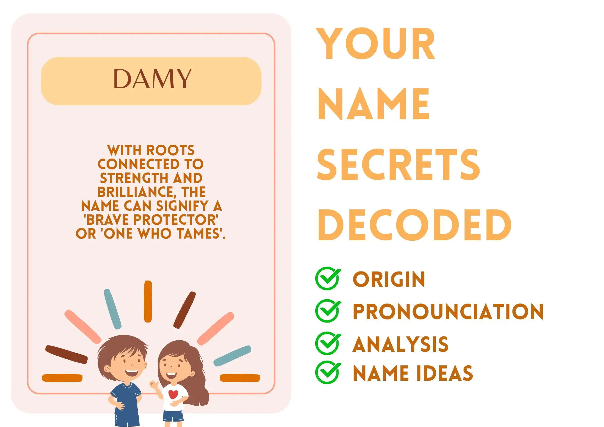 Damy is a unique and modern baby name that can be derived from various languages and cultures. Primarily recognized as a diminutive form of names like 'Damiano' or 'Damon', it carries connotations of strength, power, and brilliance. While not traditionally prominent in a specific culture, its usage has gained traction in contemporary naming practices, making it a fresh choice for parents.