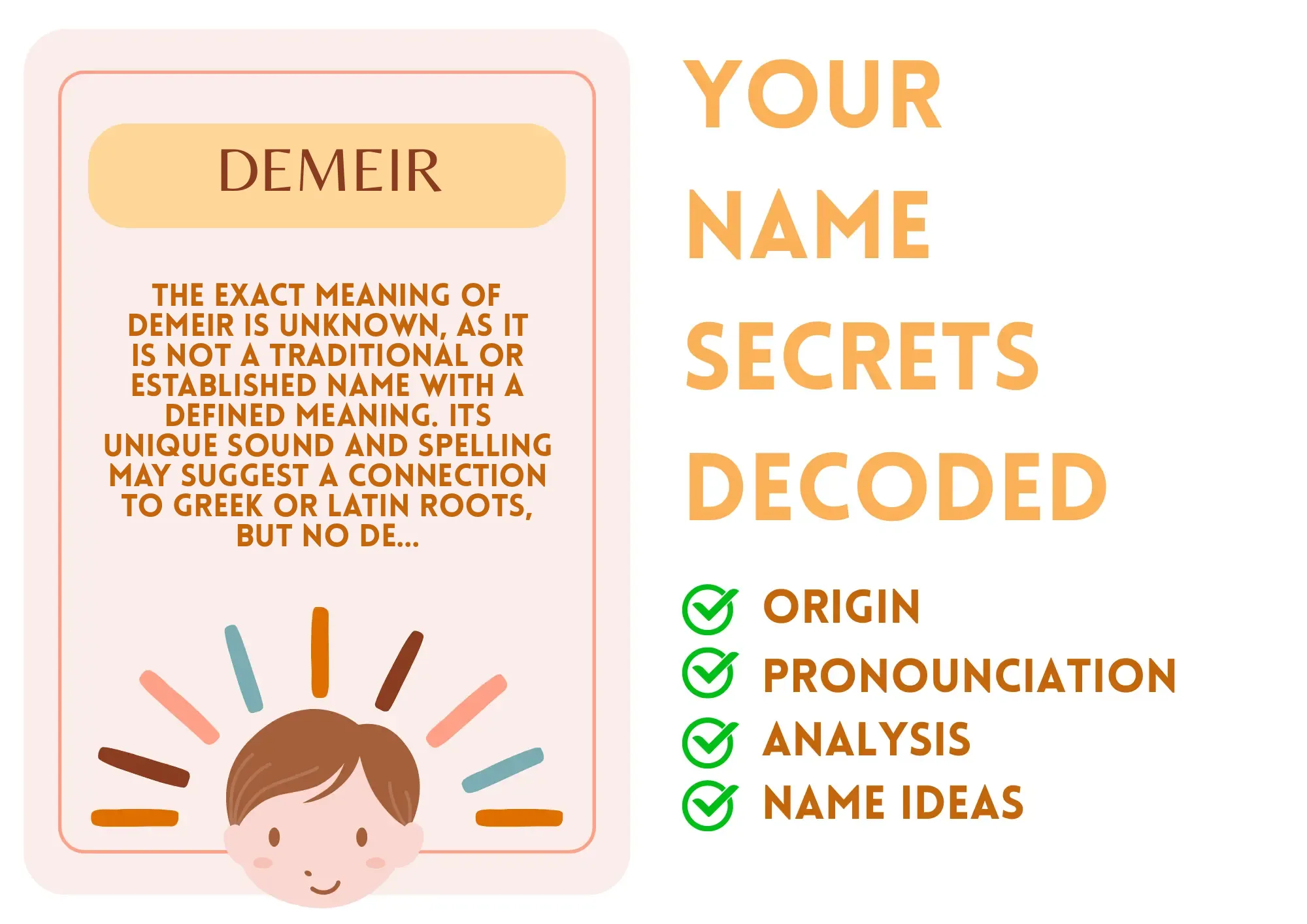 Ease of Writing and Calling: Demeir is straightforward to write and pronounce. It has a clear and distinct sound, making it easy to remember and call.