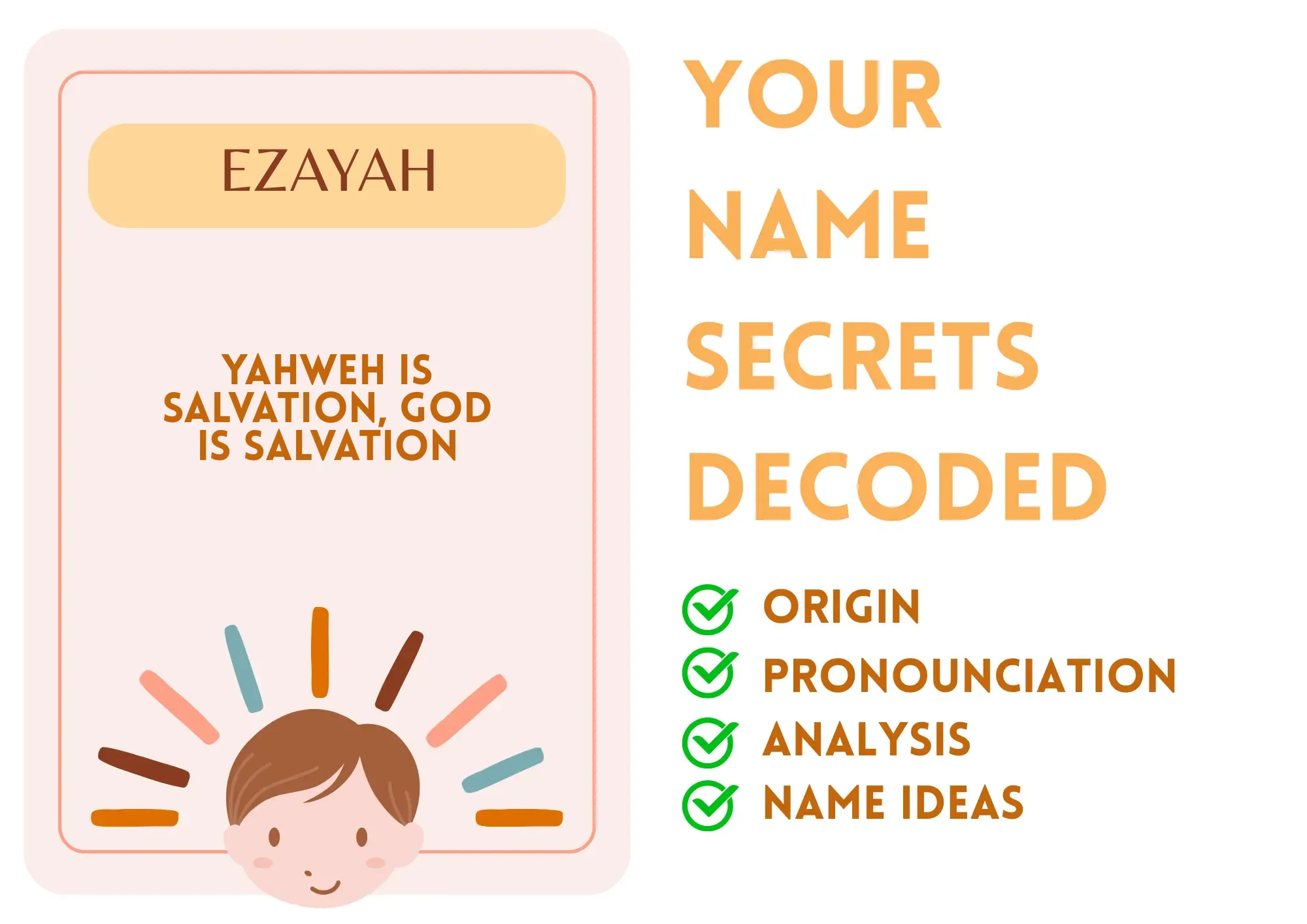 Ezayah is a name of Hebrew origin, derived from the biblical name Isaiah. It means "Yahweh is salvation" or "God is salvation." The name has a strong religious and spiritual connotation, particularly in Christian culture.