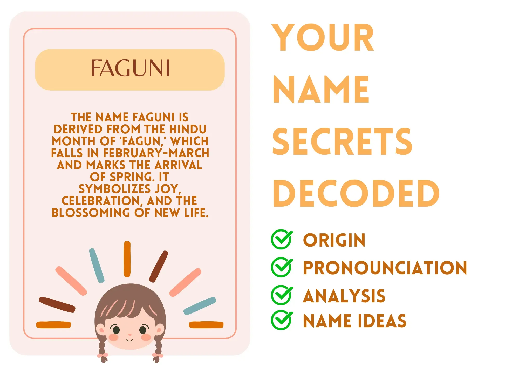 Faguni evokes feelings of happiness, optimism, and new beginnings. It is easy to pronounce and write, making it a popular choice for parents seeking a unique and culturally rich name.