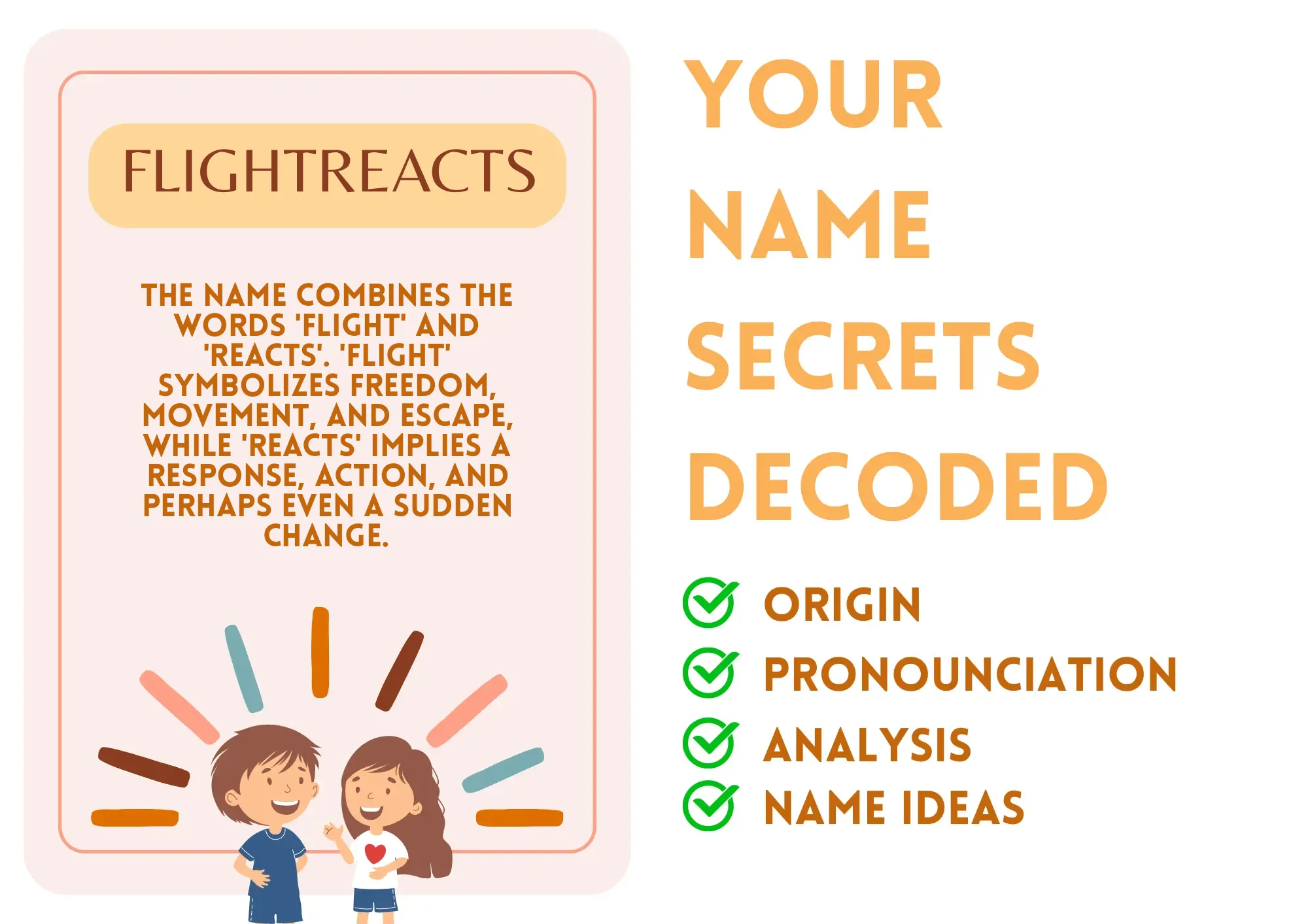 FlightReacts is a unique and modern name, combining the concepts of flight and reaction. It is a name that evokes a sense of dynamism, spontaneity, and perhaps even a bit of unpredictability. The name is likely to be interpreted in various ways, depending on the individual's perspective.