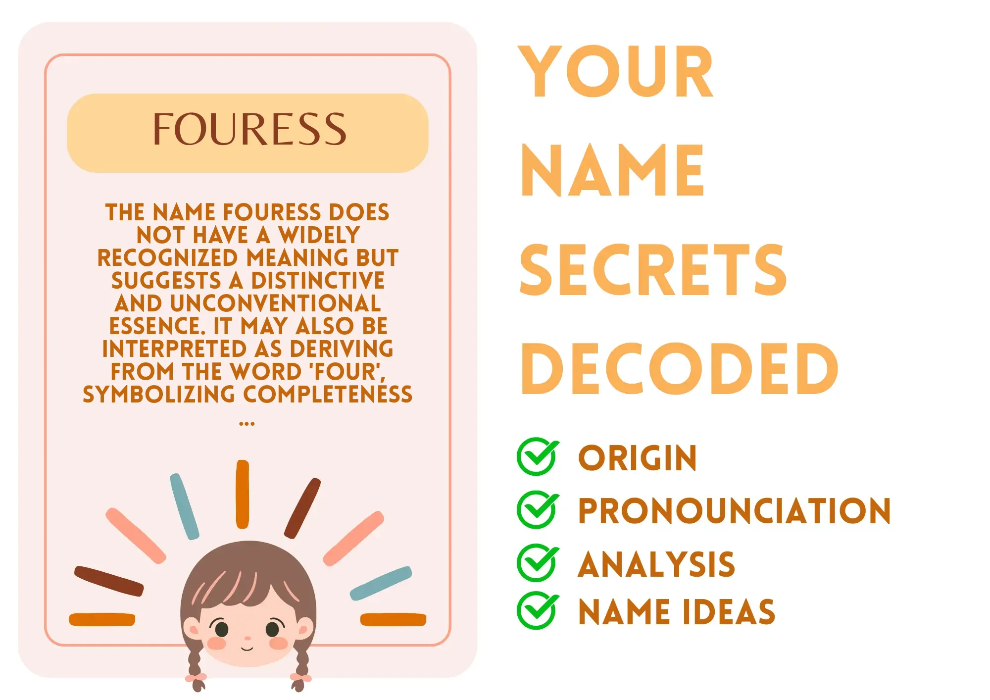 Meaning: The name Fouress does not have a widely recognized meaning but suggests a distinctive and unconventional essence. It may also be interpreted as deriving from the word 'four', symbolizing completeness or a quartet.