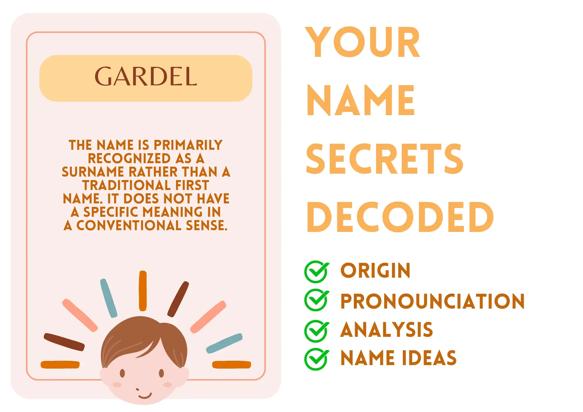 Origin: The name Gardel has Spanish origins, particularly established in Argentina, reflecting the heritage of Carlos Gardel.