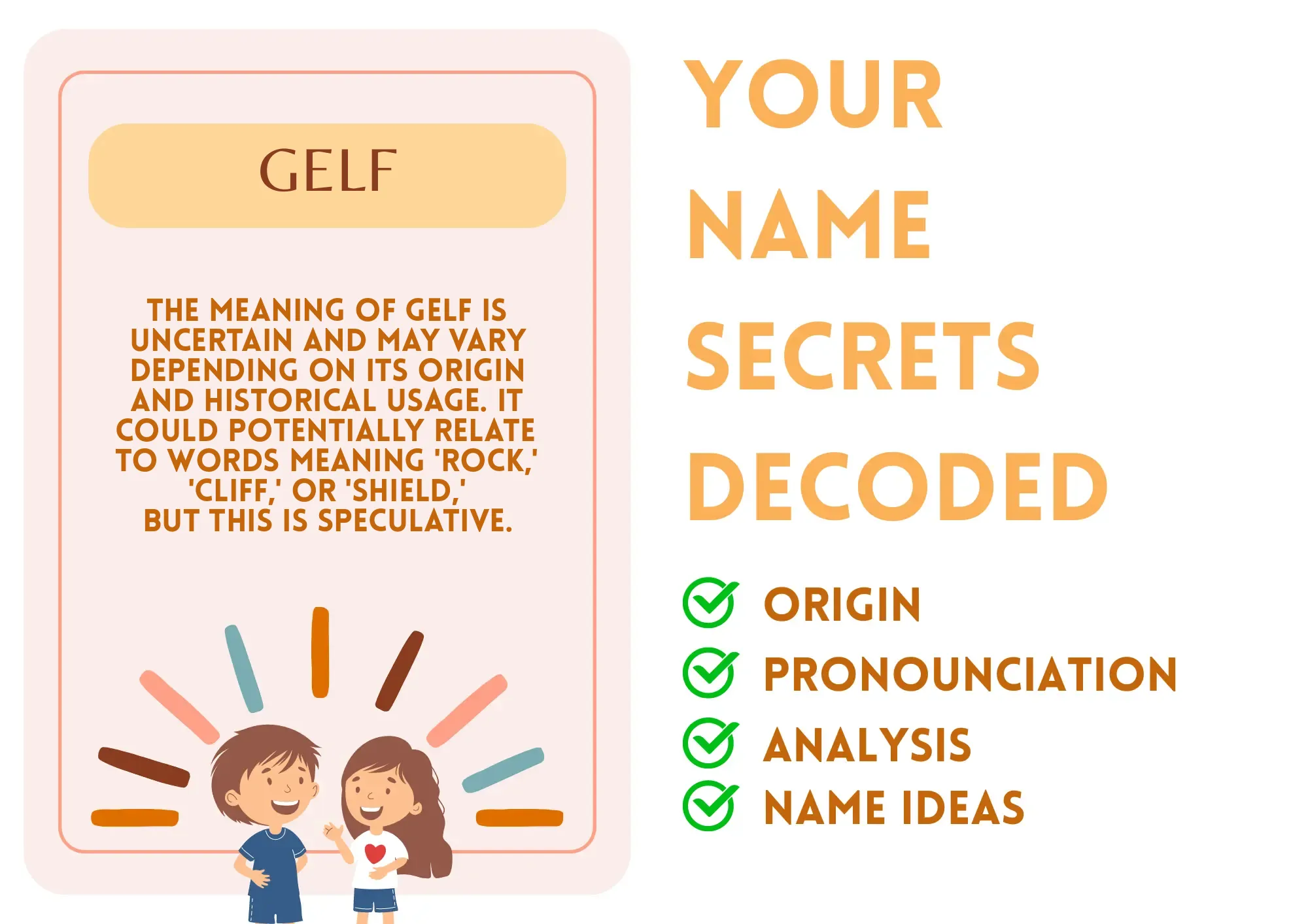 Think of Gelf as a shield—a protector who prefers to stand firm in the face of challenges. With a name that evokes the image of strength, Gelf carries the essence of stability in all ventures. This person's nature is grounded, making them someone you can rely on when the going gets tough. So when life throws curveballs, Gelf is like that cozy blanket on a chilly night—there to reassure you that everything will be okay. People are naturally drawn to Gelf’s solidness, seeking the stability Gelf provides in their lives.