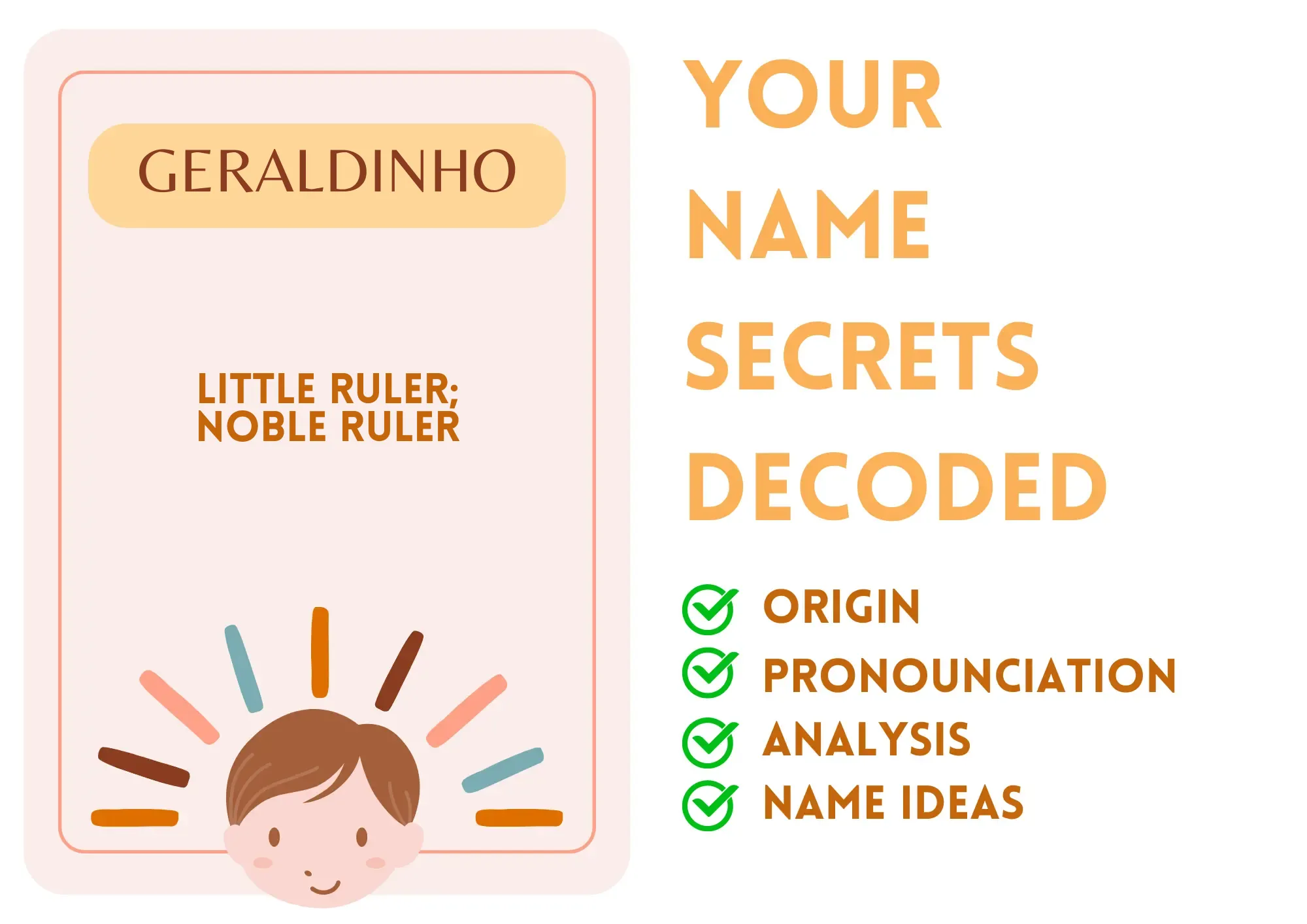Geraldinho is primarily masculine and symbolizes a noble ruler, derived from the Old German name Gerwald. It signifies strength, power, and leadership while carrying a hint of affection due to its diminutive form.