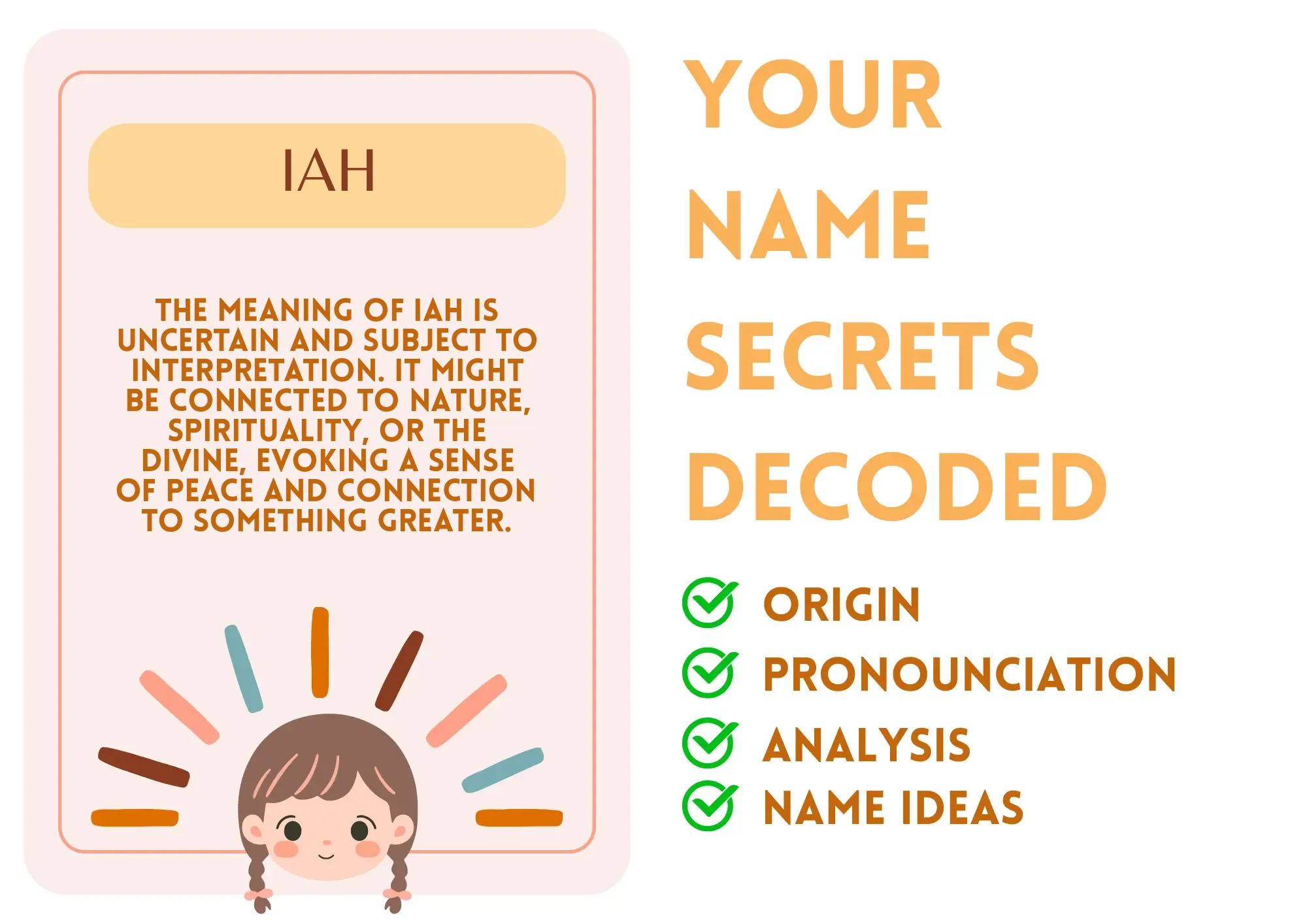 Iah is a relatively uncommon name, making it stand out as a distinctive and individual choice. Its simplicity and elegant sound make it easy to pronounce and write. It's a name that feels both modern and timeless, suitable for parents seeking a name with a touch of mystery and beauty.