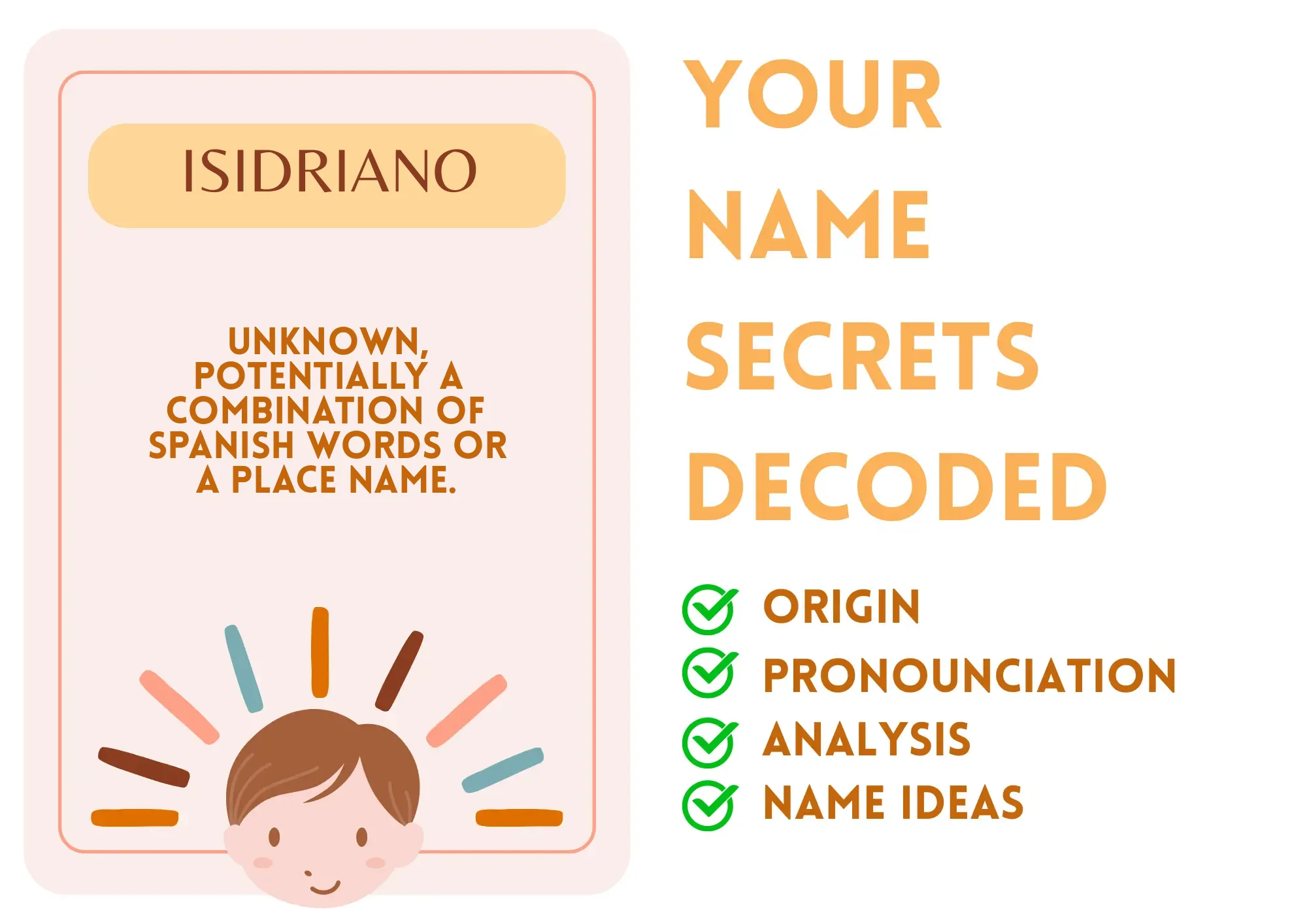 Origin: The name Isidriano has Spanish origins, possibly stemming from a combination of Spanish words or a local place name.