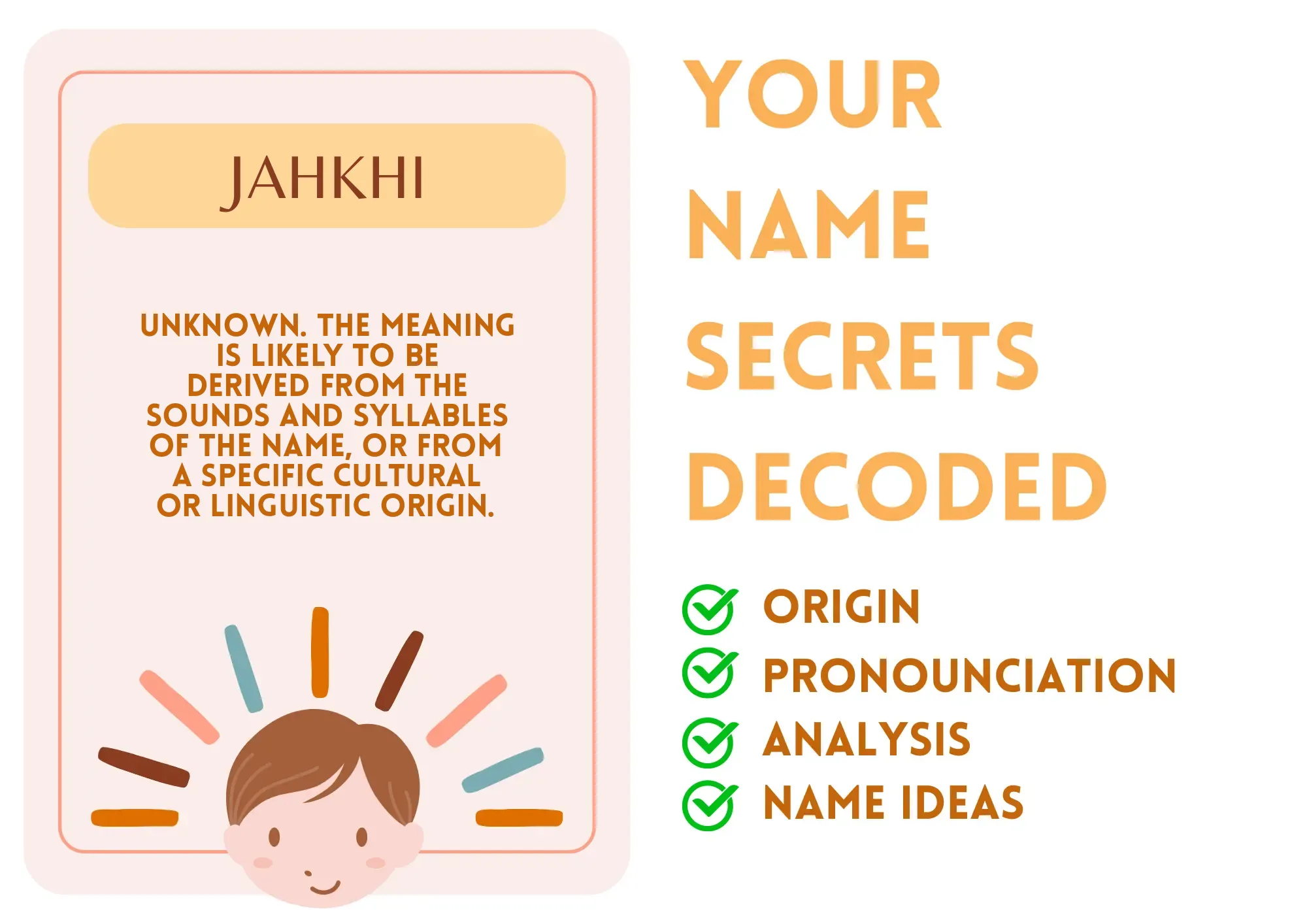 Jahkhi is a unique and distinctive name with a strong, modern feel. Its origins are uncertain, but it could be a creative combination of sounds or a variation of a name from a specific culture or language. While the meaning is not readily available, the name itself evokes a sense of strength, individuality, and confidence.