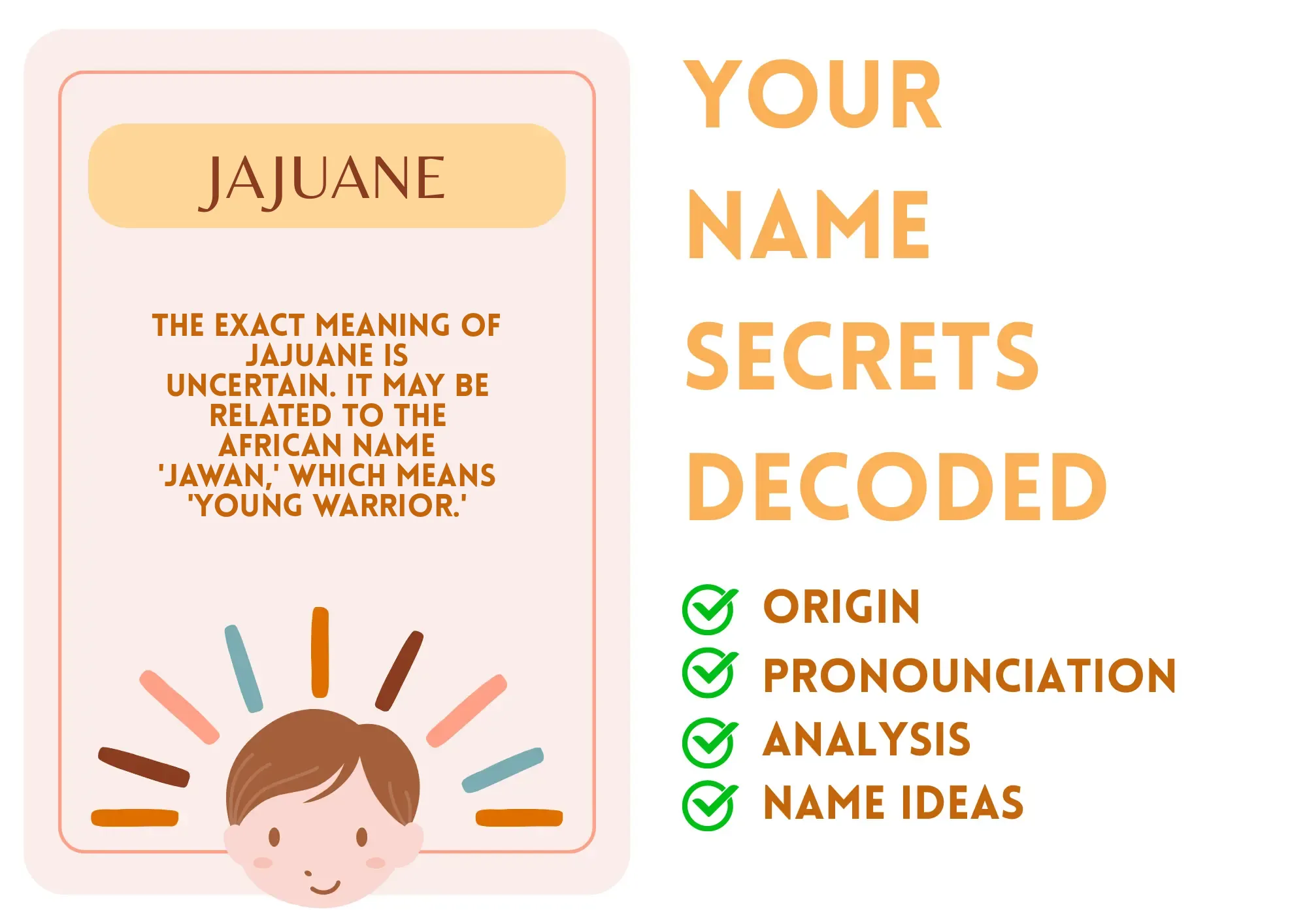 Meaning: The exact meaning of Jajuane is uncertain. It may be related to the African name 'Jawan,' which means 'young warrior.'