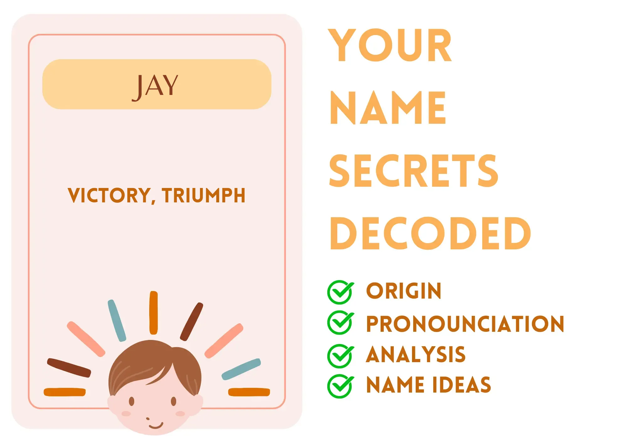 Have you ever thought about how a name can carry such powerful vibes? Well, the name Jay means "victory" or "triumph," and it carries a spark of success just waiting to shine through. Imagine being like a bright firework bursting in the sky; that’s the kind of energy Jay brings! So, whether you’re working on a school project or setting your sights on your dreams, remember: you’ve got the name that rings with triumph!