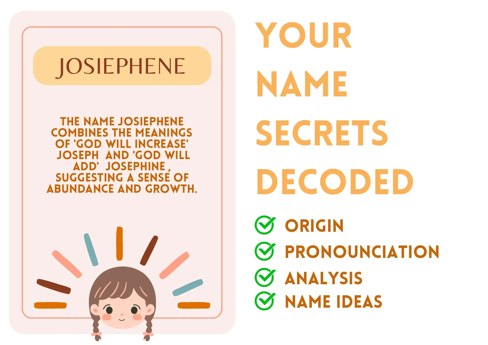 Origin: The name Josiephene is a combination of the Hebrew names Joseph and Josephine, both of which have biblical origins.