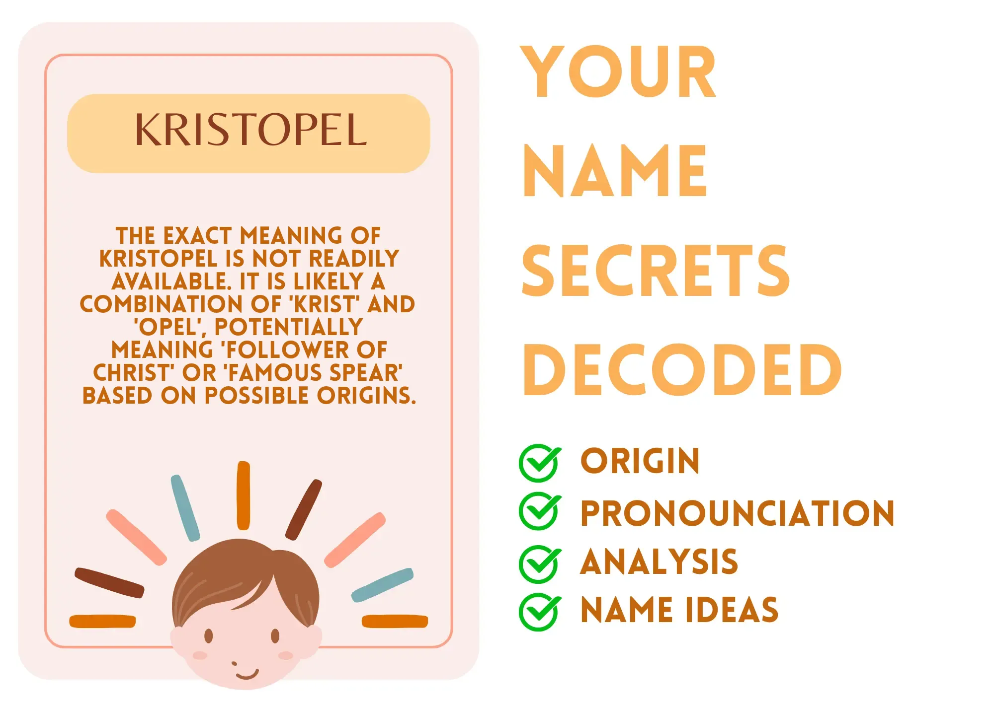Meaning: The exact meaning of Kristopel is not readily available. It is likely a combination of 'Krist' and 'opel', potentially meaning 'follower of Christ' or 'famous spear' based on possible origins.