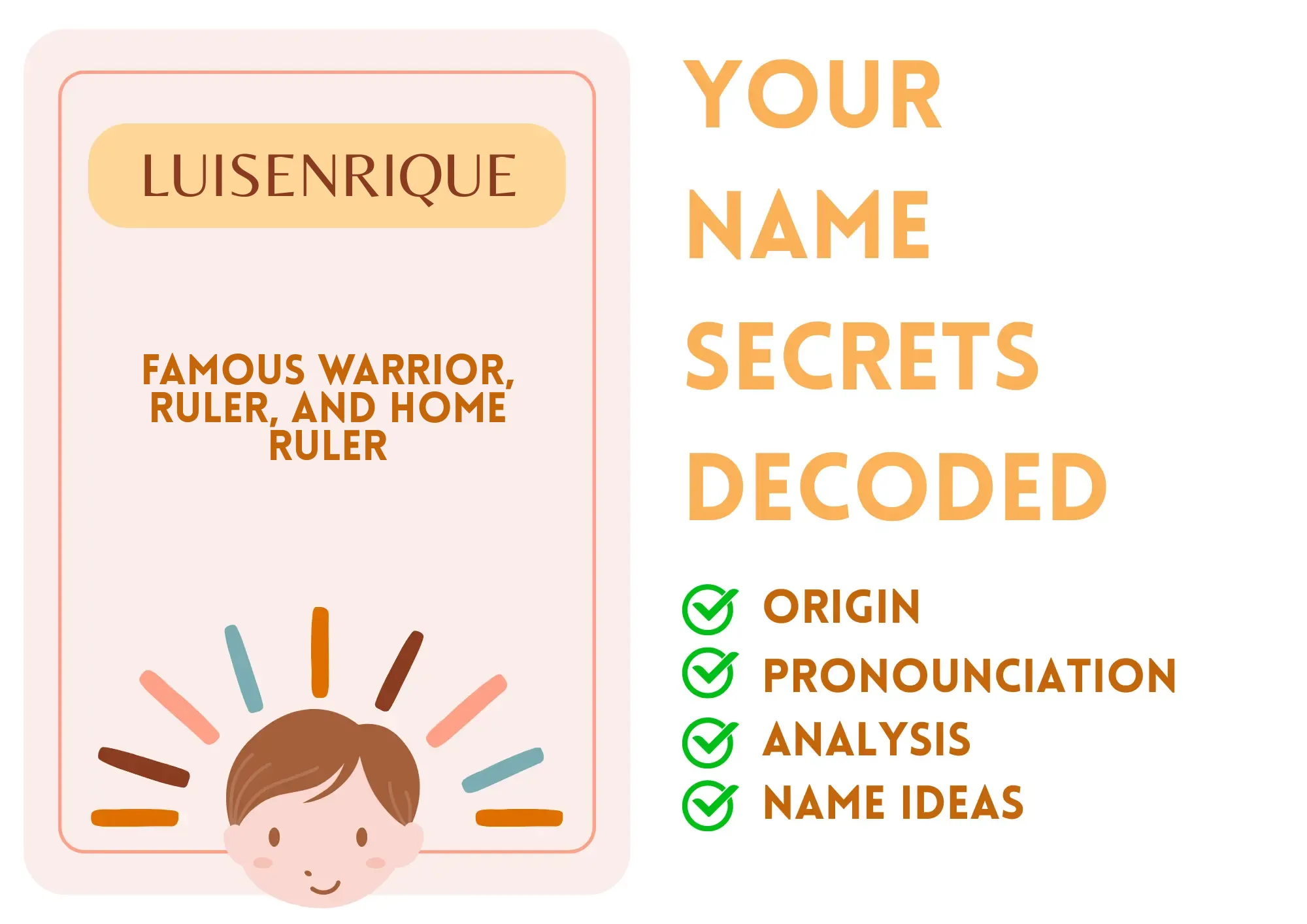 Luisenrique is a unique and powerful name, a combination of the Spanish names Luis and Enrique. It carries the rich history and cultural significance of both names, blending tradition and strength. The name is primarily used for boys and is often chosen for its strong masculine connotations.
