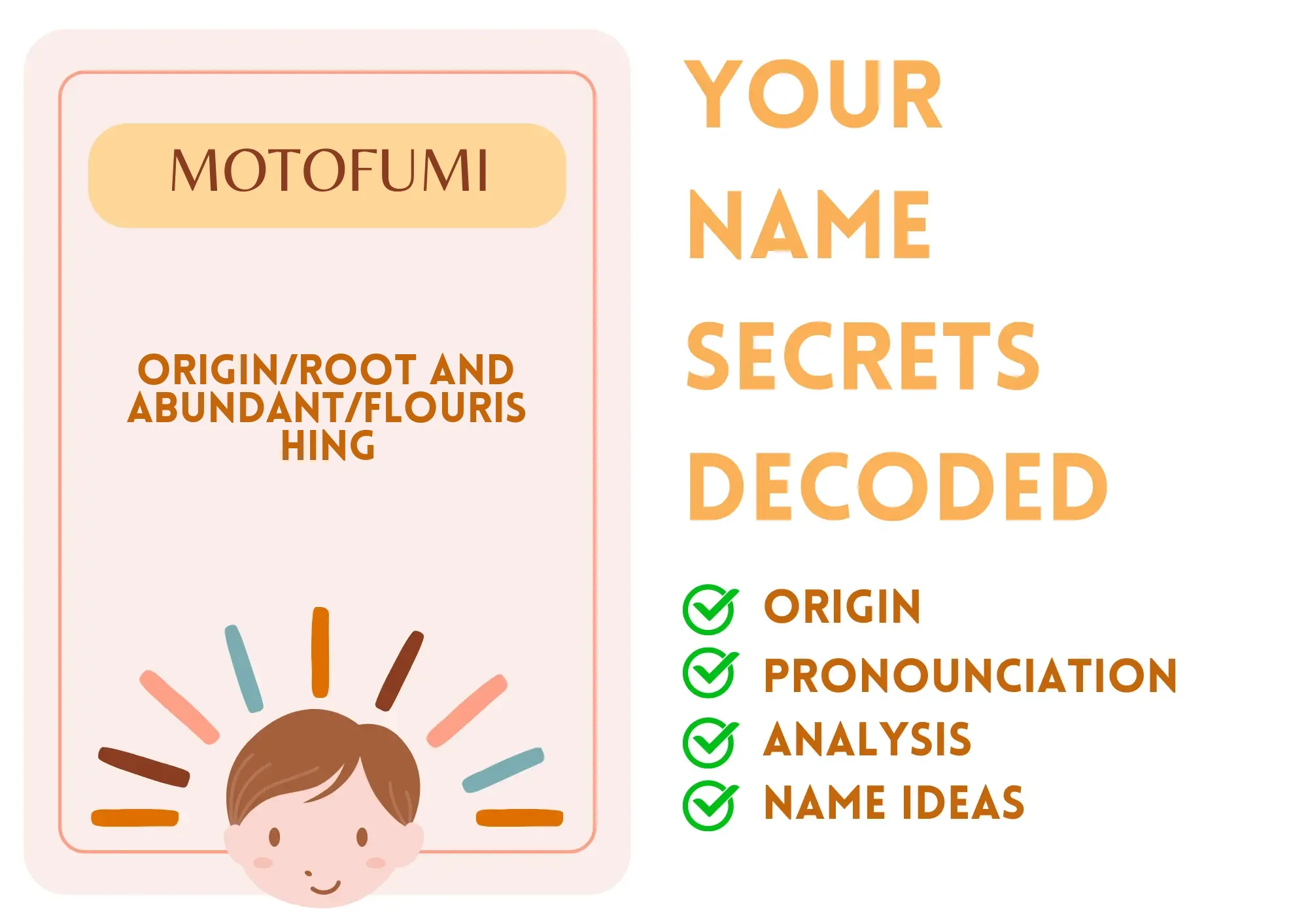Imagine walking through life with a name that not only sounds cool but carries a rich story with it. Meet Motofumi—a name that resonates with growth, strength, and a connection to roots, like a sturdy tree standing tall against the wind. This isn't just a name; it's a badge of honor that reflects the journey of family, tradition, and the promise of flourishing like wildflowers in spring.
