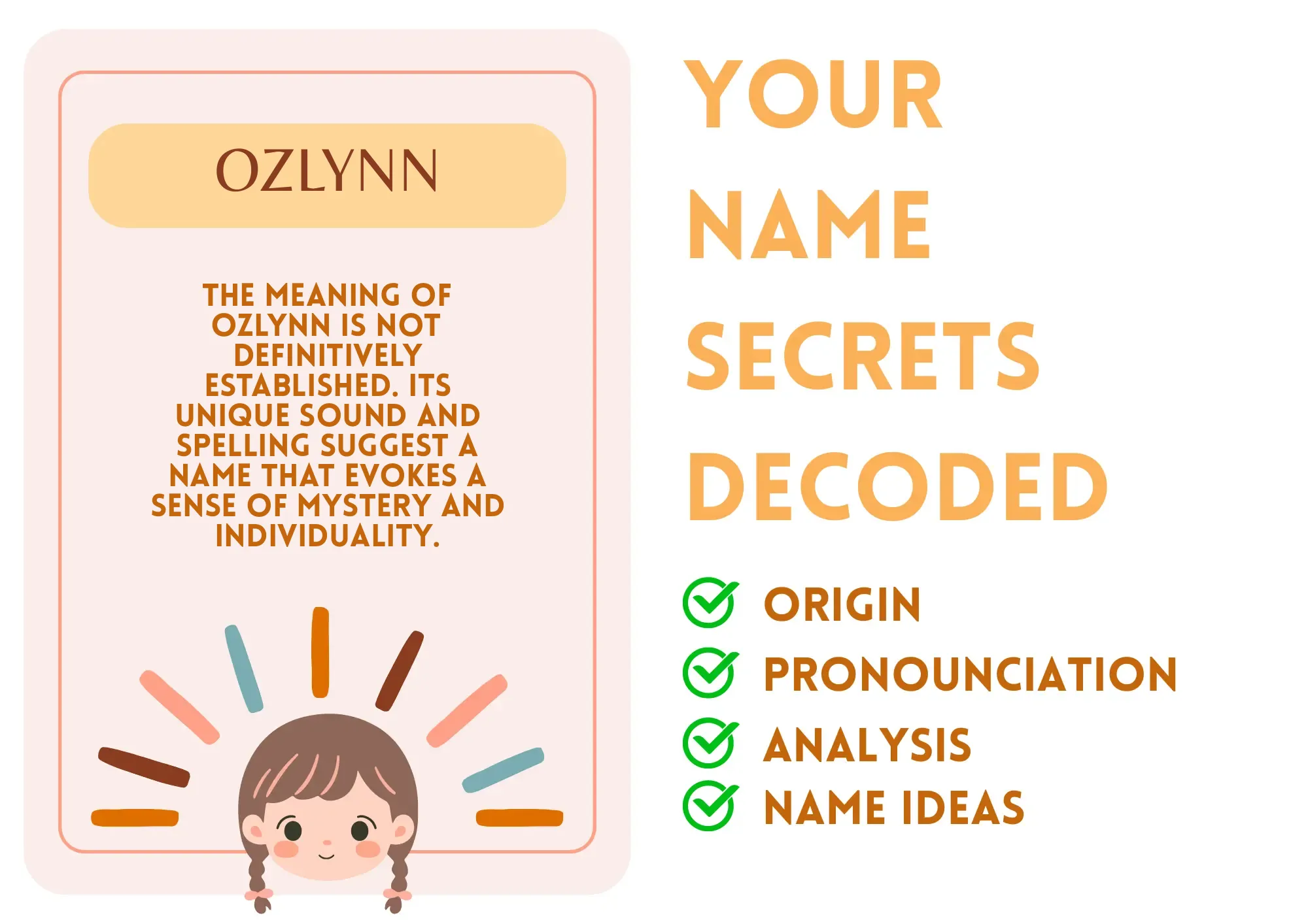 Ozlynn is a unique and modern name with a whimsical charm. While its origin and meaning are not clearly defined, its sound and spelling evoke a sense of mystery and individuality. It is primarily used as a feminine name, offering a distinctive and memorable choice for parents seeking a name that stands out.