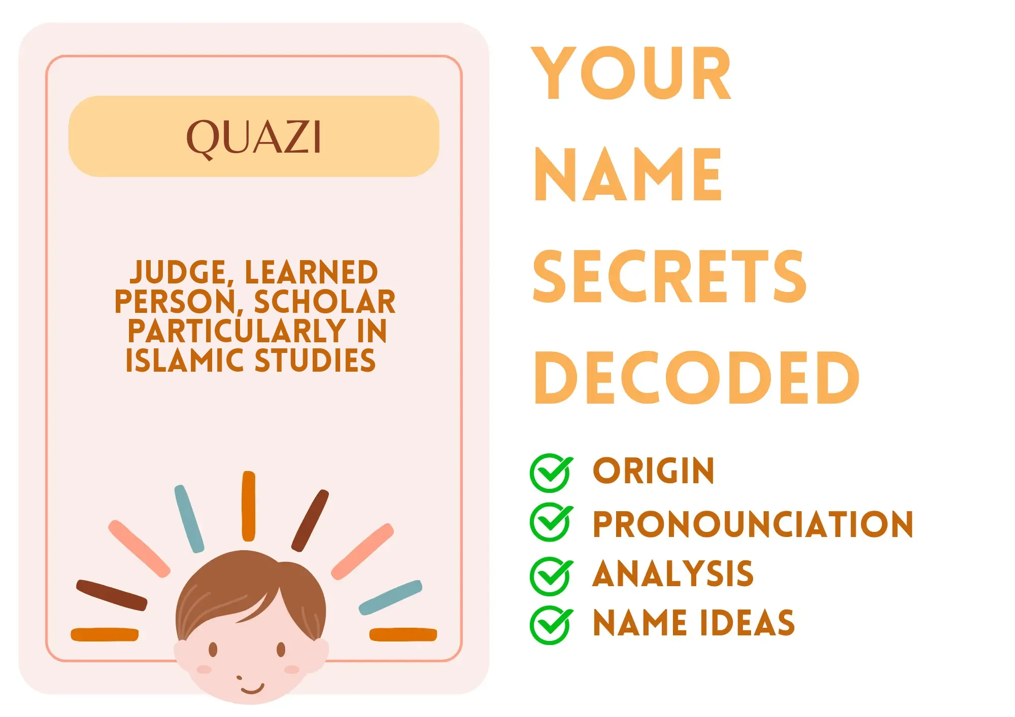 Origin: The name Quazi has Arabic origins, derived from the word 'Qadi' meaning 'judge' or 'magistrate'.